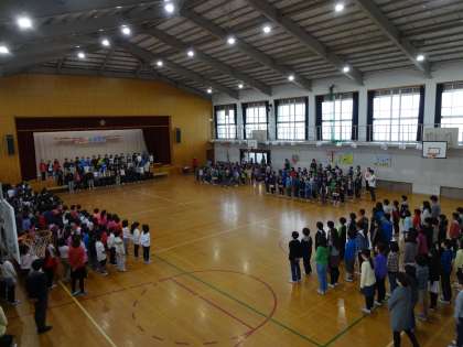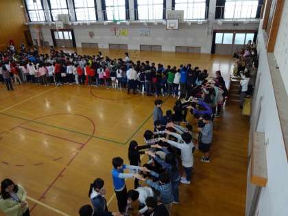 最後は全校児童で「ビリーブ」を歌い、花道を作って6年生を送りました。