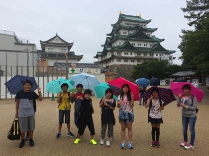 バスからシャチホコが見えると歓声があがりました。城内では色々な展示物を見たり、実物大のシャチホコに乗って写真撮影をしたりしました。