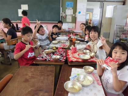 1年生から6年生までのたてわりグループ毎に教室に集まり,