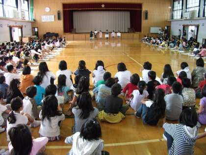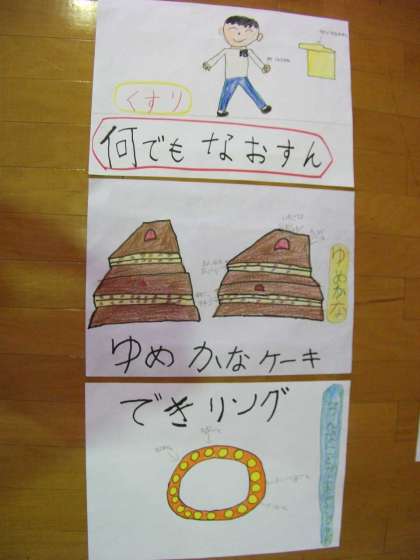 今回の児童集会は,2年生が国語の授業で勉強した『あったらいいな,こんなもの』を発表しました。