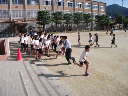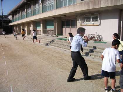 1700m走の後は,ダッシュ&ジョグです。他の子ども達と共存するために,大外コースの一部を使って練習しました。
