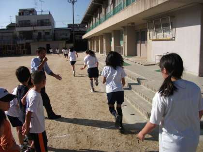 秋晴れの6年学年陸上朝練習 〜ダッシュ&ジョグ〜