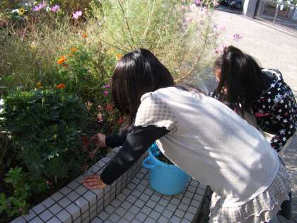 園芸委員会の朝の園芸作業は雑草抜きでした。つい先日までは,水遣りばかりでも追いつかなかったのと比べると,花壇の乾燥も落ち着いてきました。