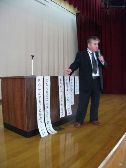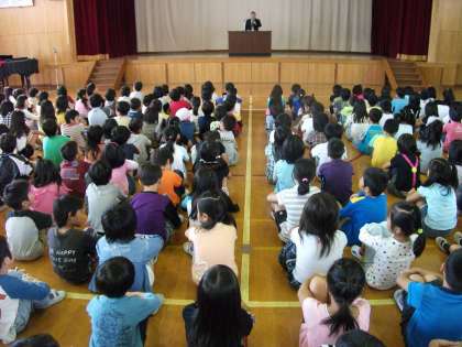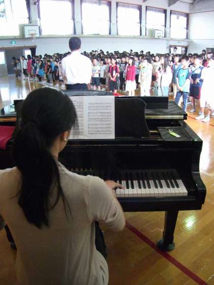 平成22年度の205日の授業日もほぼ半分がすみました。校歌を斉唱し,校長先生のお話を聞きました。