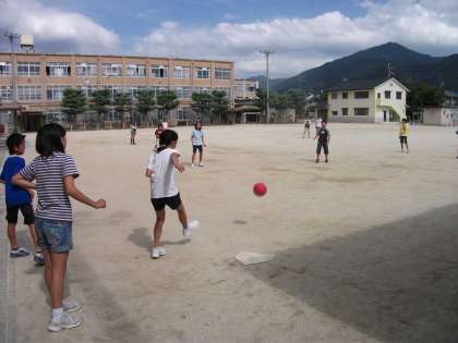 6年生は,学級活動でキックベースをしました。今日は前期最終日,6年生だけでなく,他の学年も『前期終了のお祝い』をしています。