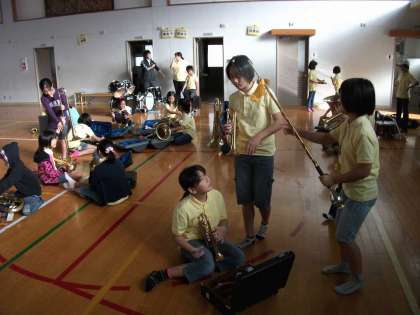 10月11日早朝,体育館に集合して,ちょっぴり緊張した面持ちで楽器の手入れ最終チェック・音出しをしました。