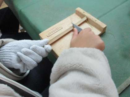 子どもたちは、慣れない小刀の使い方や力の入れ具合に悪戦苦闘しながらも、集中して最後まで世界に一つだけのお箸づくりに没頭していました。
