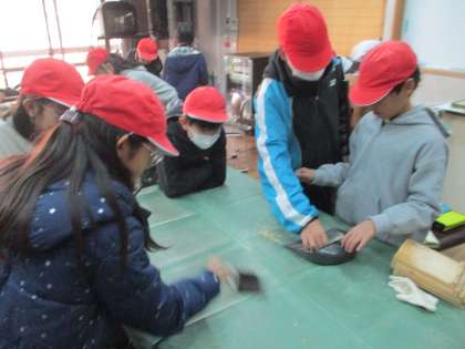 削った竹のくずは、3日目の野外炊事の着火の際に活用します。