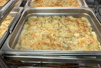 ルーの上にパン粉を乗せてスチームコンベクションオーブンで焼いているのでカリッとしていてとてもおいしく食べられました。