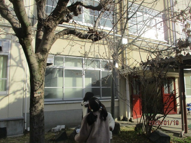 生活科「ふゆとともだち」の学習で、冬見つけをしました。草木の様子では、「秋にはたくさん葉っぱがあったのに、冬は全然ない」「葉っぱは茶色で枯れているみたい」という子どもたちのつぶやきが聞こえてきました。また、太陽高度が低く影が長く出やすい冬の特徴を生かし、影遊びもしました。いろいろなポーズを試し、どんな影ができるのか観察しました。できた影を友達に紹介し、同じポーズをとってみたり、影をつなげてみたりしました。寒い日が続きますが、冬の楽しさを見つけていきましょう。