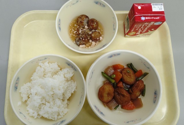 あげ里いものあんかけはさといもを煮て下味をつけてから米粉で衣をつけて油で揚げたあげ里いもに鶏ひき肉やけずり節で取っただしで作ったそぼろあんをかけて食べる献立です。