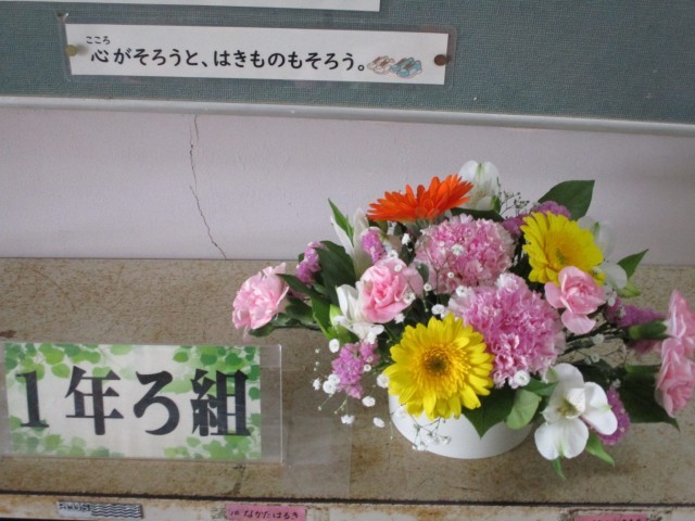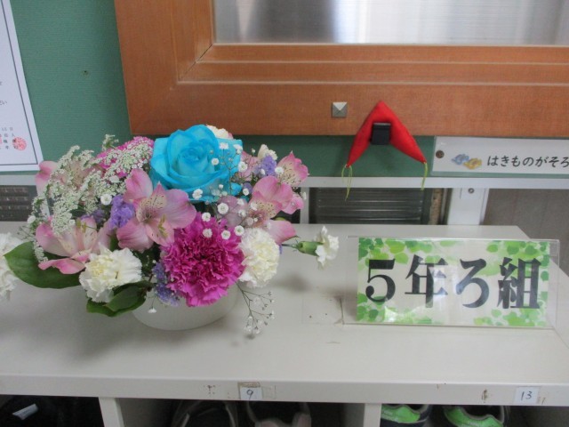 子どもたちの入学・進級のお祝いに、PTAよりかわいいお花のアレンジメントをいただきました。