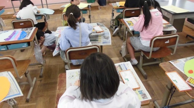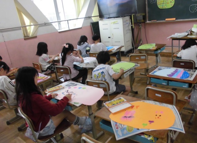 図画工作科「ふしぎなたまご」に取り組んでいます。自分だけの卵からどんなことが生まれてくる?と考えながら作品を作っています。子どもたちは、思い思いに自分だけの卵を作っていました。