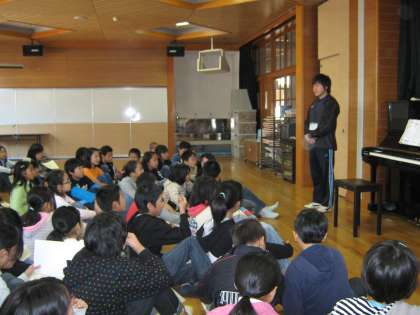 金曜日の集会では,初めに5日間お世話になる,高橋キャンプリーダーの紹介をしました。