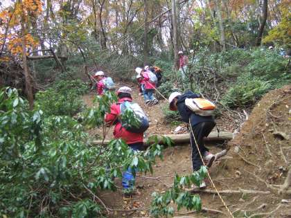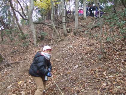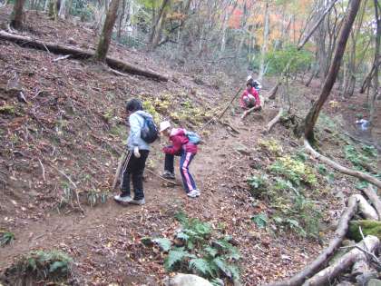 お腹もすいてきましたが,お昼ごはんの前に,雲取山最大の難所がみんなを待ち受けています。