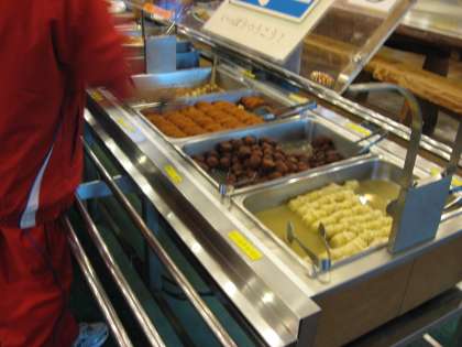 ロールキャベツや焼きたこ焼き,そして,豊富なサラダ類が出ました。