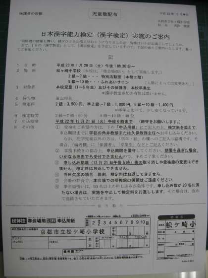 12月9日に家庭数で配布しました申込用紙は,学校に余分がありますので,必要な場合は,学校までお越しください。なお,お子たちを通じてもお渡しできますので,その旨ご連絡ください。