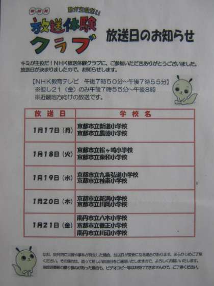 早速ですが,12月に参加した「NHK放送体験クラブ」の放送日が決定しましたので,お知らせします。