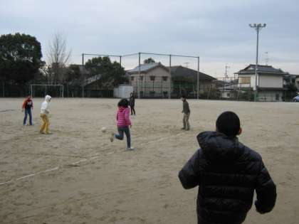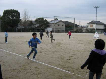 あまりの寒さに,はじめのうちは心も体も凍ってしまっている様子も見られましたが,ルールを教え合ったり,声援を送ったりと,後半にはずいぶんと盛り上がってきました。