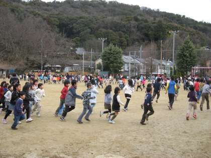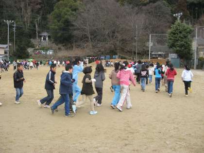 寒風の中,子どもたちは元気いっぱい走っていました。