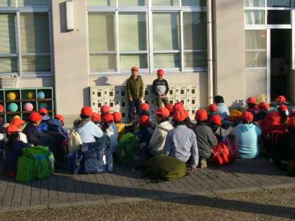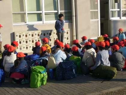 4年生の子どもたちが出発式を終え,みさきの家に向けて出発しました。