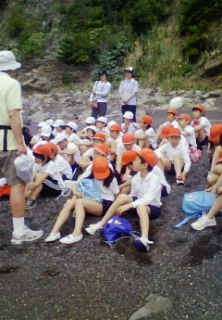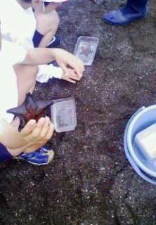 天候の関係で,みさきの家探検を変更して磯観察をしています。