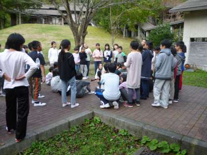 お風呂からあがって,夕食までの間,みんなで集まって歌を歌いました。