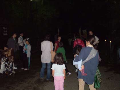 小大連携事業で,京都工芸繊維大学の皆さん,おやじの会の皆さんのお世話で,「ホタルに連れられまち歩き」の会を実施しました。