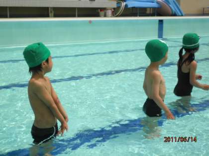 いよいよ6月14日(火)より待ちに待ったプールが始まりました。少し肌寒かったようですが「なかよしのお友だち」も元気に参加しました。プールの中ではかにさんになったり,ワニさんになったりして,おおさわぎでした。プールがはじめての1年生も楽しく水なれの時間をすごしました。