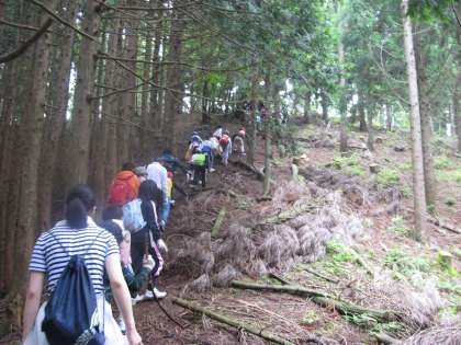 遅れてしまう子もいましたが,励まし合って登りました。先頭グループは,温かく見守りながら待ってくれていました。