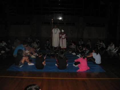 雨のため,プレイホール(体育館)でのキャンドルファイヤーに変更しました。
