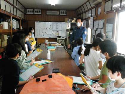 4年生は,社会科の「自然災害からくらしを守る」の学習で,消防団の方からお話を聞かせていただきました。消防団の方々が,どのようなことをされておられるのか,また,どんな器具などが常備されているのか,などについて教えていただきました。ありがとうございました。