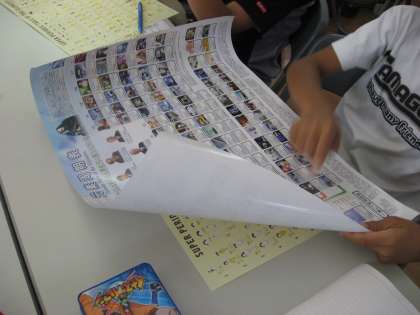 文部科学省から出されている「一家に1枚周期表」を用いながら,元素の命名の由来などについて学びました。