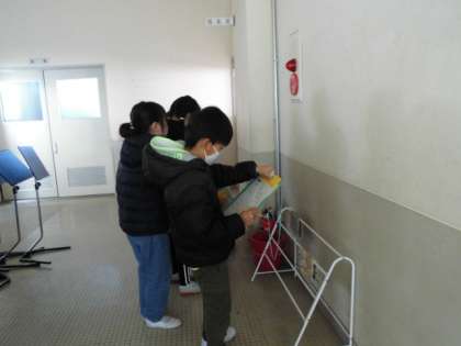 21日(木)3年生の社会科では,どこにどんな消防用設備があるのか調べました。校舎内を歩いて見つけた設備を記録していきます。記録していくことで,子どもたちは「各教室に消火用バケツがあること」「消火器の多さ」に驚いていました。今後は,調べてきた家庭や地域での消防用設備も交流し,身の回りには様々な火事の備えがあることを学習していきます。