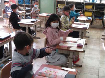 曲に合わせて,エアウッドブロックやエアトライアングルを演奏しながら聴く姿が,ほほえましく,子どもたちが曲を味わって聴いていいるんだなぁ…と,感じます。