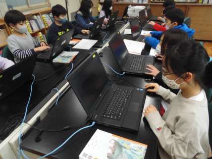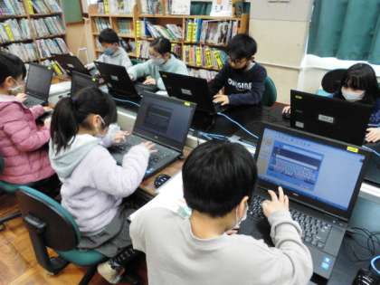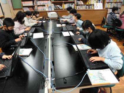ローマ字の学習を生かして,コンピューターでの文字入力の学習をしました。基本の手の置き方,姿勢などを確かめた後,実際に文字入力をしました。