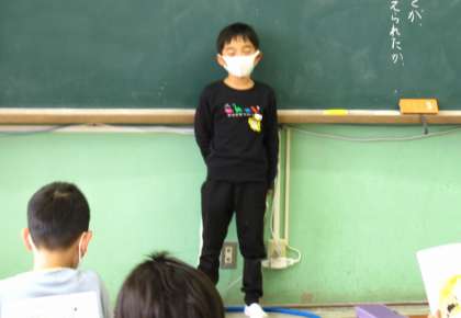 今日は,発表会。みんなの前で,堂々と音読できました。
