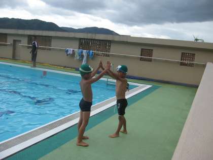 ターンをして50m以上に挑戦した児童や,初めて25m(7級)いけて,互いに喜び合っている児童やガッツポーズをしている児童などが見られました。みんな一生懸命がんばっていました。