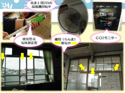 窓,欄間,前後の入口を開け,扇風機2台,クーラーを作動させた状態で
