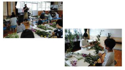 かがやき学習で京都の伝統文化を学ぶために,地域でお世話になっている京極 康生さんに華道体験の講師に来ていただきました。