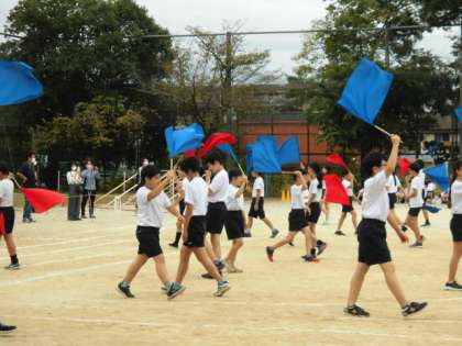 ハードル走,100m走,フラッグパフォーマンス,それぞれにがんばりました。一生懸命に取り組む姿はかっこいいです。今後の学校生活に生かしていきましょう!