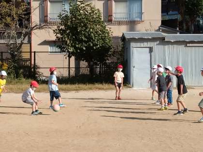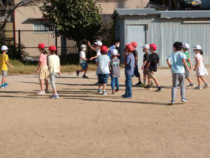 子どもたちは同じ組の友だちだけでなく,大勢で遊んでいます。