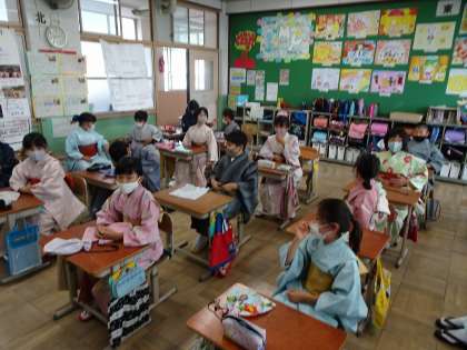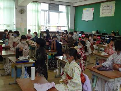 4年生 かがやき学習 きもの気付け体験その2
