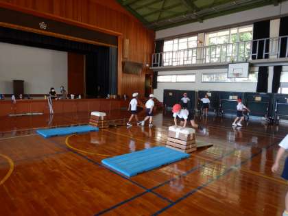 体育科では「とび箱運動」の学習を始めました。自分ができる技,自分がもう少しがんばればできそうな技に挑戦しています。