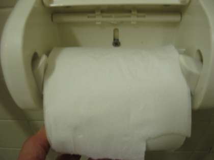 運動場のトイレのペーパーホルダーの芯が取り付けにくく,外れやすいというものです。
