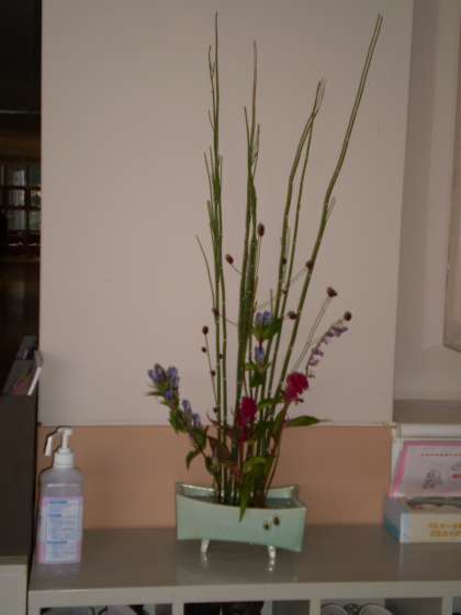 3名の先生方は,ずいぶん早めにお越しいただき,今日も,本館1階を生け花できれいに飾っていただきました。