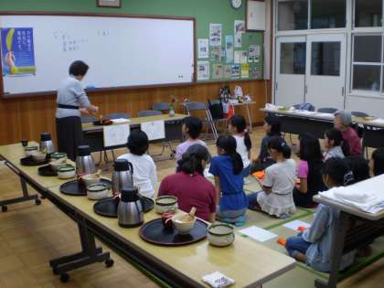 そのあと,茶の湯の学習が始まりました。子どもたちの背筋も自ずとピンとのびています。