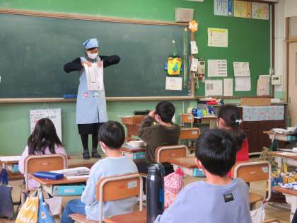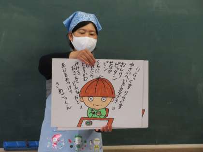 給食時間の終盤,「まほうの食べ方」という紙芝居をしていただきました。