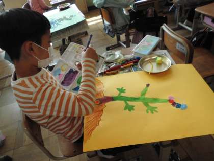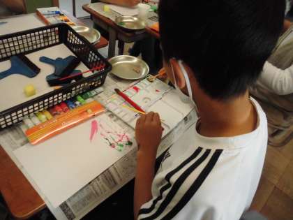 「まぼろしの花」の作品作りを始めました。今日は,いろいろな技法を試しながら,自分のイメージに合うものを選びました。子ども達は,「いつ,どこに咲くか。なぜ,まぼろしなのか。」と,想像を膨らませながらのびのびと描いています。