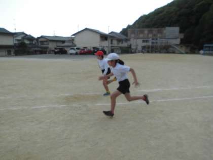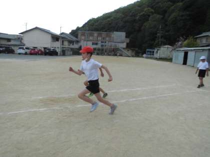 体育科の時間に,50メートル走のタイムを計りました。走っている児童だけでなく,見ている児童も「頑張れ!」「うで振って!」と,懸命に応援する姿が見られました。